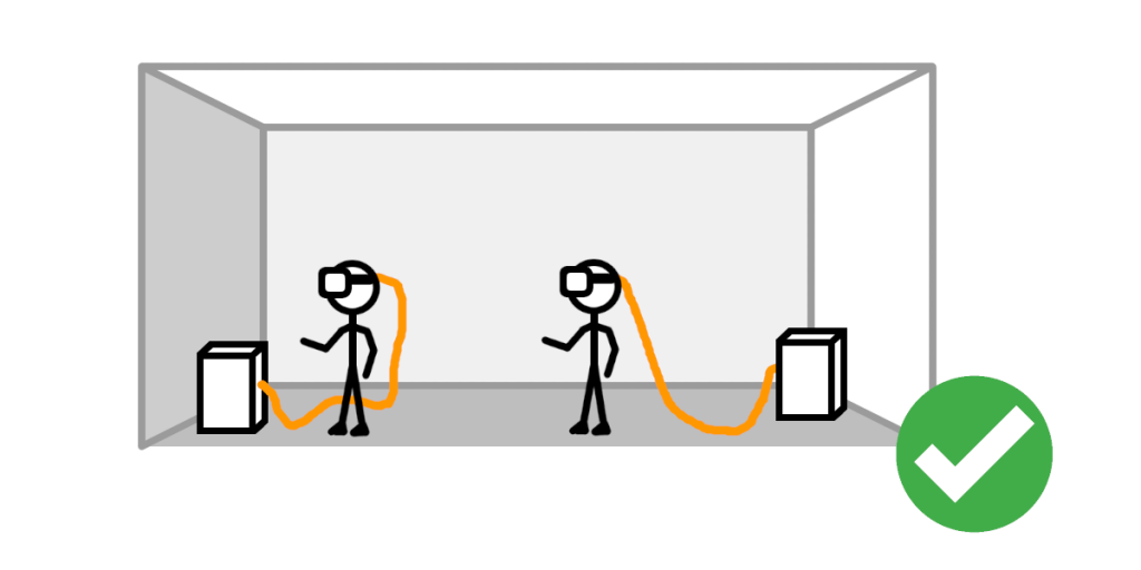 Wir konzentrieren uns hier vor allem auf Räumlichkeiten für nicht-autarke VR-Brillen. Also Brillen, welche auf Basisstationen, einen Computer und entsprechende Kabel angewiesen sind.